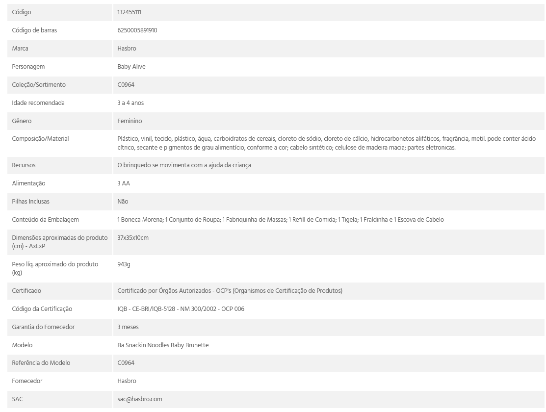 BONECA BABY ALIVE ADORA MACARRÃO MORENA - HASBRO
