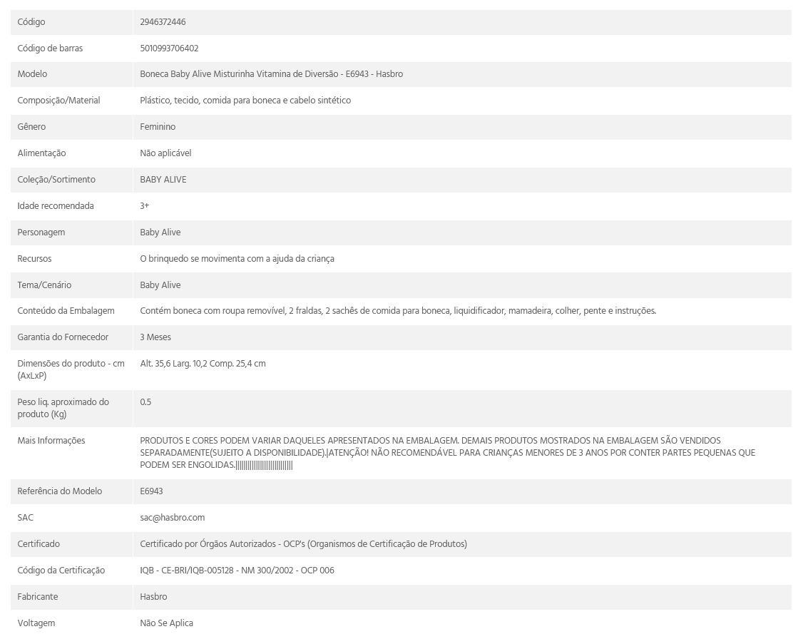BONECA BABY ALIVE MISTURINHA VITAMINA DE DIVERSÃO